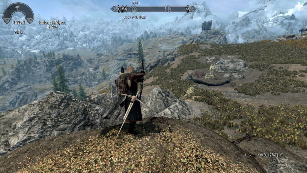 画像だと見づらいですが、弓で狙いを定める時に矢の軌道が表示される機能が地味に便利でした。