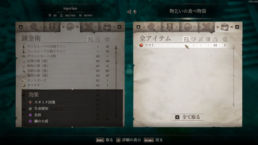 この袋にトマトを入れて、外で待機→この袋がリスポーンしたら壺を確かめるという検証です。