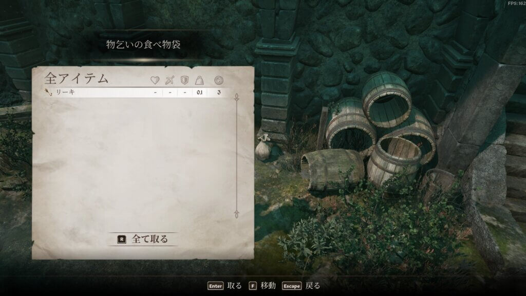 本当にリスポーンしないのか、近くにある物食いの食べ物袋と比較して実験してみました。