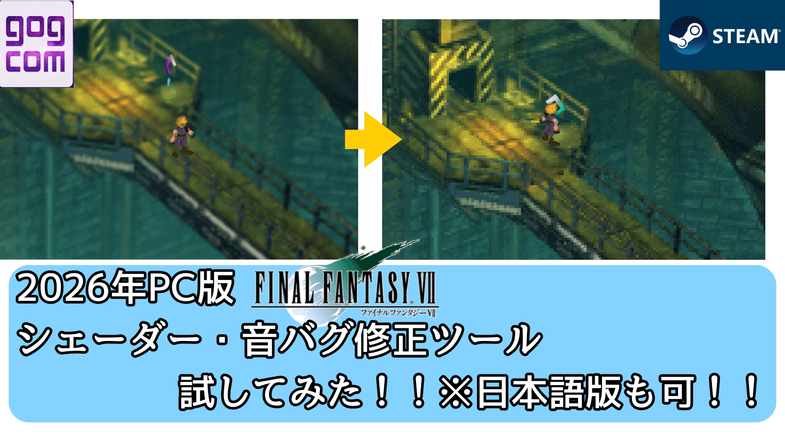 SteamとGOGでFF7(リメイクじゃない方)のPC版が日本向けにも発売されたのが今年2月の話。