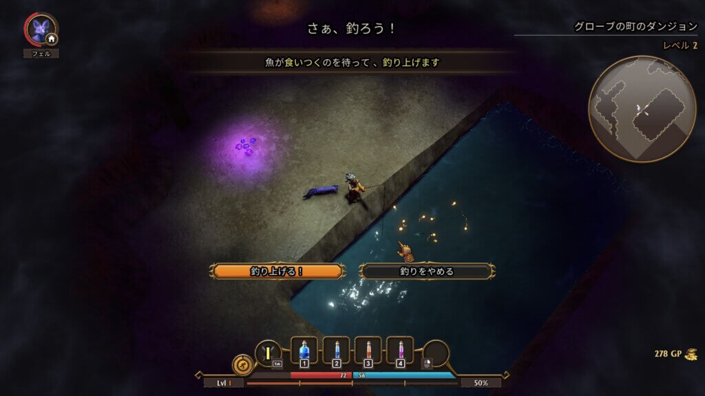 釣りも単純にタイミングで釣り上げるボタンを押すだけのシンプルなシステム。