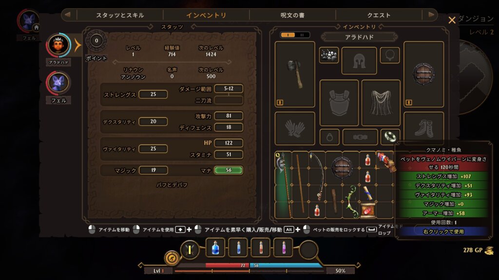 私のキャラは魔法使いっぽいスキル振りだったのですが、基本近接なので近接と魔法両方のビルドになりそう・・・。