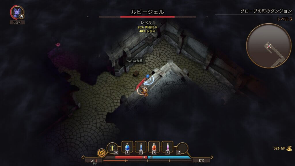いざダンジョンに潜ると、ハクスラ系のダンジョンのように壺や宝箱などが落ちているので、目に入ったらひたすら壊す・開ける・アイテム拾う!!