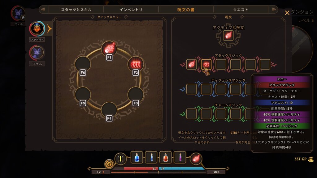 ある程度進めて分かったのが、魔法のアイテムを取得して読むと習得するというものだったので、習得!!